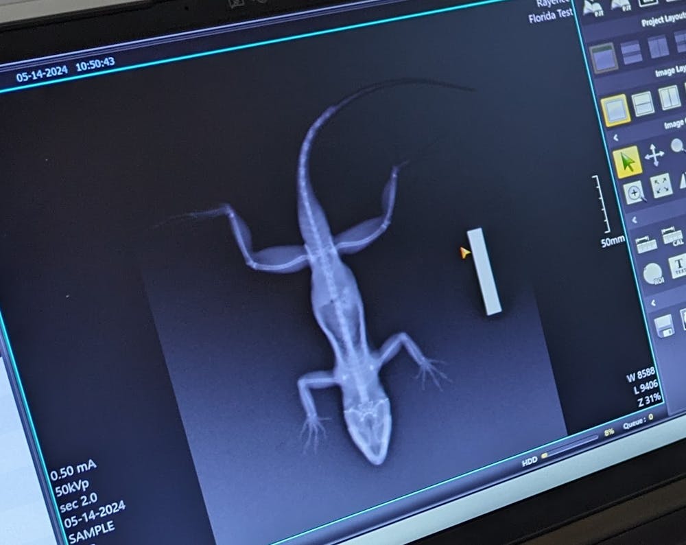 Here, the real Olympic trials begin. Every athlete goes through a comprehensive evaluation. Our portable X-ray machine reveals their skeletal structure, and high-resolution scans capture the intricate details of their feet. This is particularly critical: Like their gecko cousins, anoles possess remarkable sticky toes that allow them to cling to smooth surfaces such as leaves and maybe even survive hurricanes.